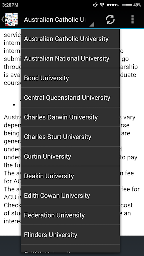 is a mobile application that helps domestic and international people who would like to study or/and visit Australia. This application also gives information about Australian universities, cost of living, available scholarships, traveling, number of students and some useful information about tourism in Australia.