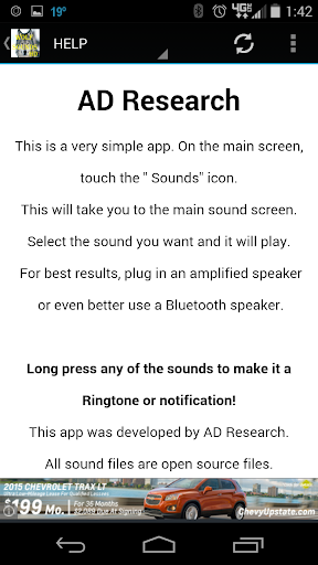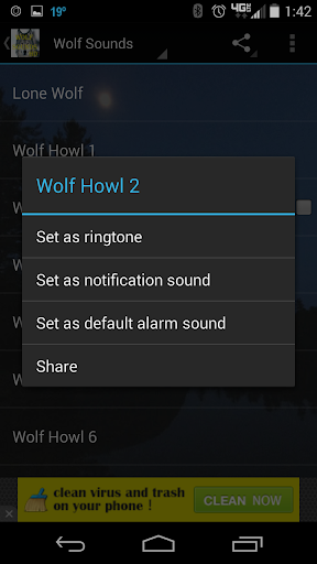 This app produces 18 Wolf Sounds for the avid wolf enthusiast. Hear Wolf Howling, Wolf pups, Wolves Growling and Wolf packs. Just plug in your amplified speaker and happy listening! For even better results...use a Bluetooth speaker.
