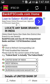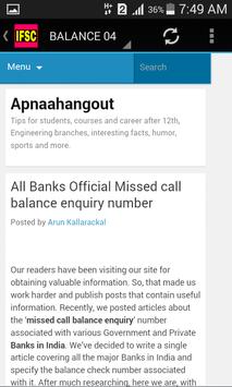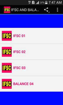 IFSC AND BALANCE ENQUIRY APP HELPS YOU TO FIND IFSC/MICR CODES FOR ALL BANKS LIKE SBI, HDFC, PNB, OBC, AXIS BANK, UBI ETC. GIVE A MISSED CALL TO THE OFFICIAL PHONE NUMBER PROVIDED BY THE BANK AND GET ACCOUNT BALANCE DETAILS BY SMS. USER NEED TO REGISTER THEIR MOBILE NUMBER WITH THE BANK TO GET BALANCE ENQUIRY BY MISSED CALL.