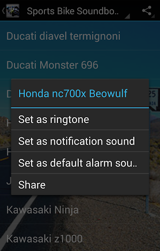 - Set Motorcycle Sounds as a ringtone or contact ringtone