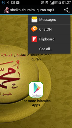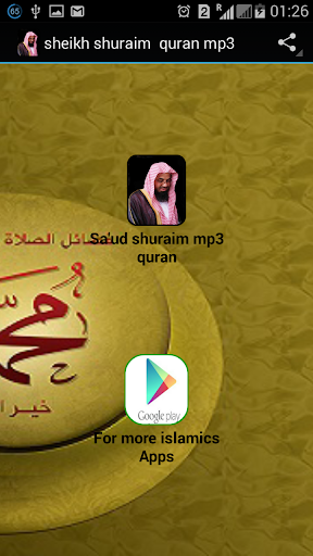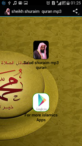 sheikh shuraim quran mp3 contain a recitation of holy quran by Sa'ud Al-shuraim. sheikh shuraim quran mp3 has all the features u need. sheikh shuraim quran mp3 works with data connection .listen to it and enjoyed it. if u need more islamics apps u can check them below. if u like this app pls leave a review.
