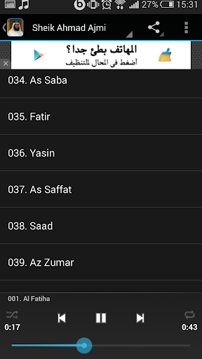 Sheik Ahmad Ajmi MP3 Quran is a recitation of holy quran by sheik Ahmad Al Ajmi which provides you with the complete recitation.