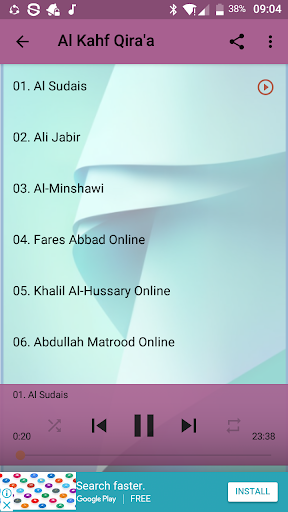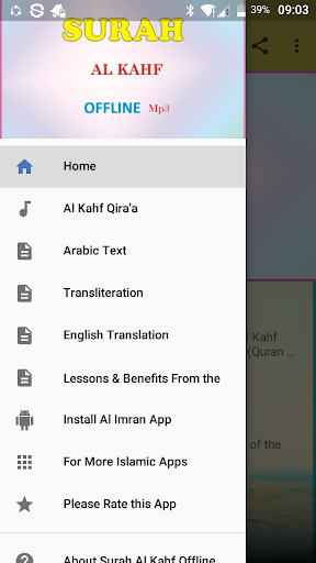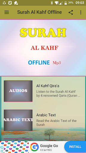 Listen to Surah Al Kahf offline. This application requires no internet connection once you install it. Sūrat al-Kahf (Arabic: سورة الكهف, "The Cave") is the 18th surah of the Qur'an with 110 ayat. It is a Meccan sura. Listen to the Surah as recited by 3 renowned Quran reciters.