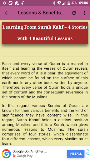 Surah Kahf appears in Juzz 15th and 16th, has 1,577 words, 6,360 letters and consists of 12 Rukus.