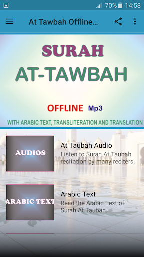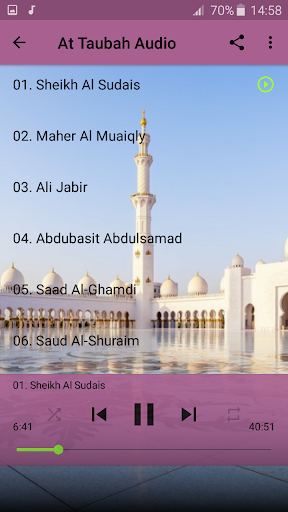Listen to Surah At Tawbah free as recited by six Qaris namely: