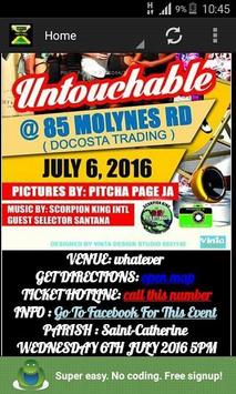 ALL JAMAICAN PARTIES ARE HERE!!! OFFICIAL APP!! PARTY INFORMATION IS FREE for all 14 parishes View Flyers, Video , Listen to Jamaican music use the app to direct you to the party SUBMIT your parties free across Jamaica FREE OF CHARGE JUST TELL YOUR PARTY GOERS ABOUT THE APPS :)