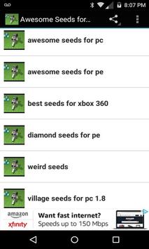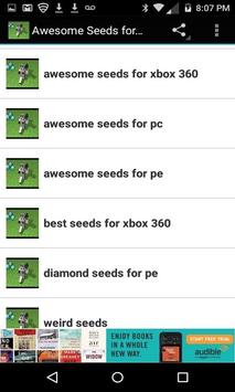 New minecraft seeds are added to the world everyday. Get the very latest seeds for minecraft here in this app. As new seeds are added to the world, they are updated in this app though videos, websites and other ways. Get all types of village seeds, jungle and island seeds. Instructions on how to install and mine seeds for MCPE, PC, Mac and Xbox. Watch videos on how to get the latest and greatest seeds to download and enjoy now.