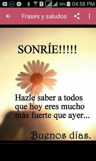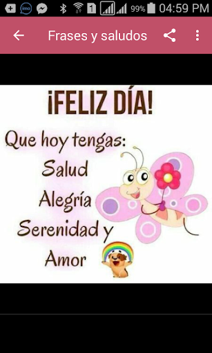 Con esta aplicación podrás enviar frases de saludos, así como frases de ánimo y motivación a todas esas personas que en verdad deseas su bien y que quieras alegrarle el día o animarles a superar cualquier circunstancia. No importa cuán distante estés pues la tecnología te permite comunicarte desde los más remotos lugares.