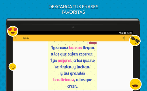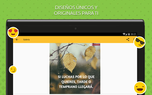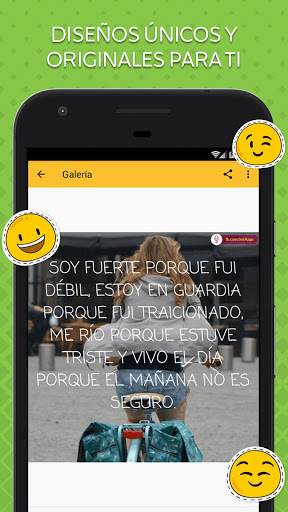 Con nuestra app, podrás disfrutar de una amplia variedad de imágenes y frases, con las cuales podrás otorgar esa palabra de aliento a quien tanto lo necesita. Te garantizamos que te sentirás plenamente identificado, ya que cada una de las Frases Superación y Motivación que te ofrecemos han sido creadas pensando en ti, por lo que encontrarás esa que se ajusta perfectamente a ti y tu situación.