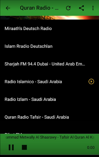 Islamic Radio (راديو الإسلامية) is a fantastic internet radio receiving application for android devices. There are some Islamic radio sites in the list (Islam Radio Player Live). The stations which broadcast Islamic programs like Religious Conversation. Just click on the station and enjoy listening to the channel.