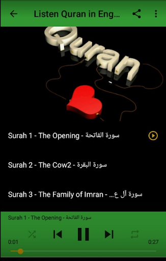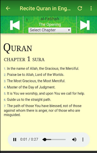 This app is actual audio translation of Quran in English in high quality and streaming MP3s.This full Quran is divided into 114 Surahs. If you want to recite English text of Quran,