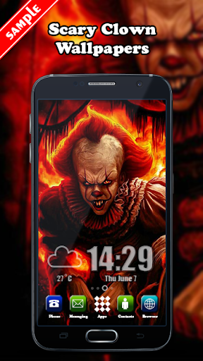 Scary Clown Wallpaper. This wallpaper is extremely beautiful and chic, especially for beautifying your beloved android device. It contains several pictures of scary clown. Download this set of wallpaper, set it as your wallpaper and enjoy the marvelous images.