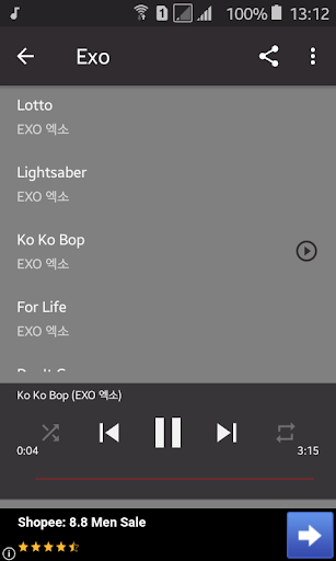 Aplikasi khusus kumpulan lagu EXO yang bisa diputar secara offline