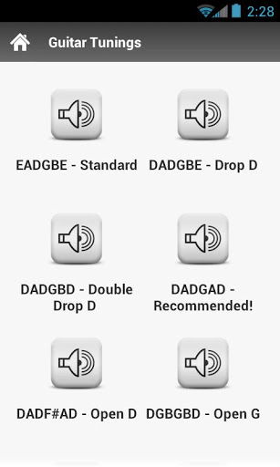 Donate amp; go Ad free Get guitar Tunings Pro: http:goo.glocmgJA collection of alternate tunings for electric amp; acoustic guitar. All the greats from Jimi Hendrix to Nick Drake experimented with different tunings. Now you can have them all in one place on your mobile phone or tablet Every tuning contains HD recordings of how the strings sound so you can detune easily. Have fun