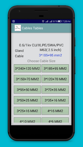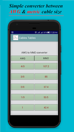 Electrical Cable Table: electrical app free for electricains