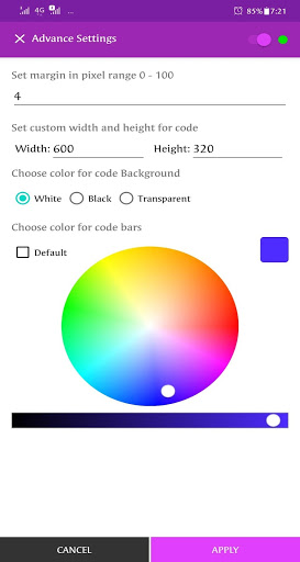 . User can generate custom codes with different colours, dimension(4000* 4000) and