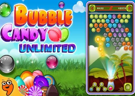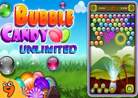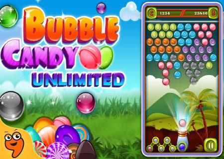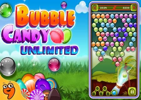 ULTIMATELY DELICIOUS BUBBLE CANDY UNLIMITED. Shoot bubbles and match colors of candies to score! This game is a great bubble shooter wrapped in delicious graphics, amazing and addictive hit game. Bubbles Candy unlimited is so addictive, you will surely forget about eating, when playing it.