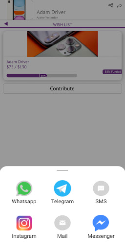 Then by the push of a button friends can easily contribute their desired amount to help "co-purchase" the desired gift.