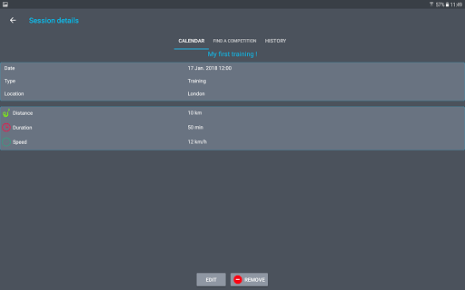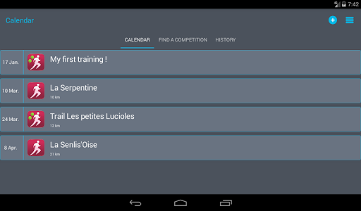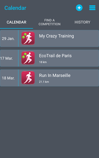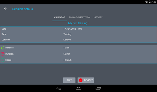 - A calendar you can fill with your next sessions and competitions. This calendar synchronize its data with your device one.