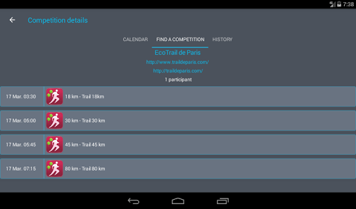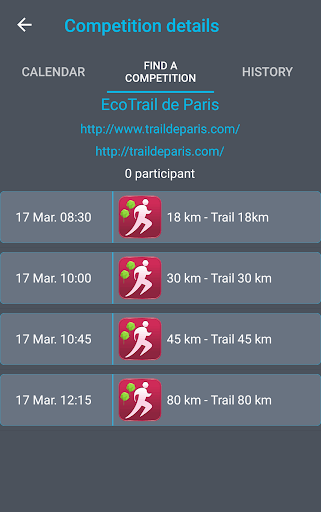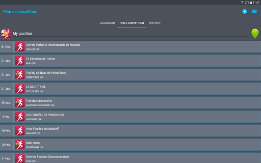 - The ability to search competition around your position or a town of your choice. Then, add these competition to your calendar.