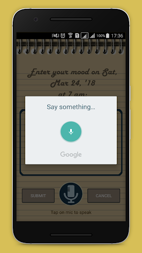from 6AM to 12 AM. The moods can be written in hand or dictated on a voice to text converter,