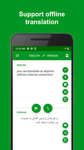 Persian - English translator is an application that help you lookup dictionary and translate words and sentences from Persian to English, or translate English to Persian too. This translator is free and you are able to translate words or sentences quickly, conveniently and easily.