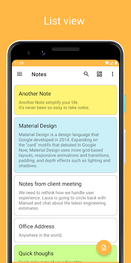 Another Note is a simple and awesome note taking app. It gives you a quick and simple note editing experience when you write notes, memos, e-mails and messages. Taking notes with Another Note is easier than any other notepad or memo pad app.