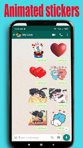 With stickers like WAStickerApps Animated Emoji and Animated meme, Romantic Animated Sticker also lets you share cute stickers via Whatz, Fa, In, etc.