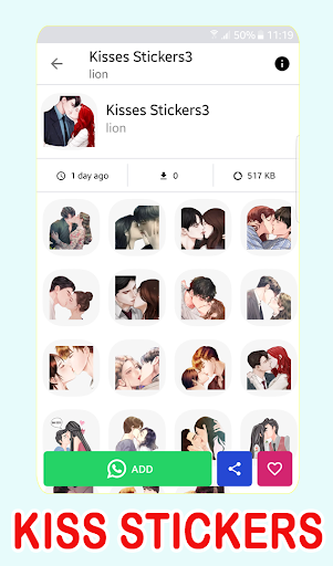 ✅ This is why we are presenting to you the First app of Animated kiss Stickers for WhatsApp and WAStickerApps. Which has a different way to share your feelings via new animated stickers WhatsApp, kiss animated stickers to your family and friends using new Kiss WhatsApp Animated emojis for android and Animation stickman 💋