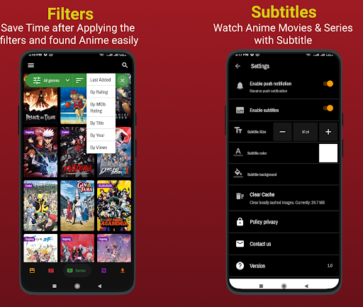 release year or country,anime genre,upload date, old and newest to help anime fans save the time they spend searching for anime series and movies that suit their needs & preferences.