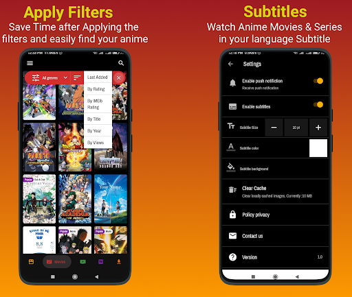 11. Apply Filters in the anime series app:Last added,Popular anime,by views,by anime seasons, by anime subtitles and so on”