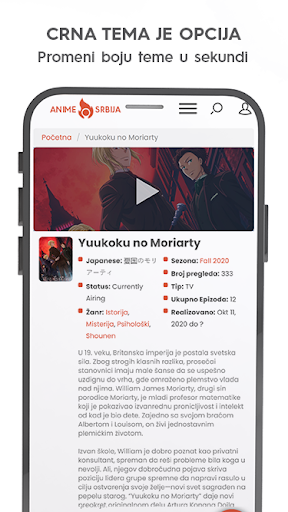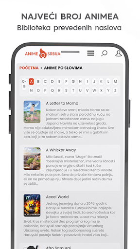 Besplatna AS aplikacija koja omogućava striming japanskih animea sa prevodom na srpski jezik (BEZ REKLAMA). Aplikacija se bazira na prikazivanju što kvalitetnijeg anime sadržaja, uz adekvatan prevod. AS aplikacija poseduje kolekciju od 500 anime serijala i filmova koja se svakodnevno širi i bogati novim sadržajem.