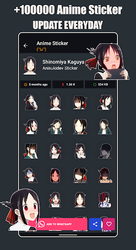 Anime Stickers for WA - Anime Memes WAStickers is an anime made App That brings you thousands of Anime, Manga and Manhwa Stickers. This WhatsApp Anime Sticker App will give you With a large Anime collection that you can use in your WhatsApp exchanges similar as Anime Meme stickers, Anime Face response stickers, Animated Anime pack stickers, Anime girls characters stickers, Anime boys Characters and numerous further popular anime WhatsApp stickers.
