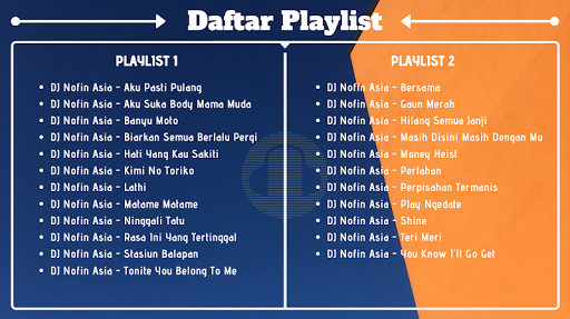 The lightest and easiest application to use, the complete "DJ Nofin Asia" 2020 application is a music application for all of you lovers of "DJ Nofin Asia" full album.