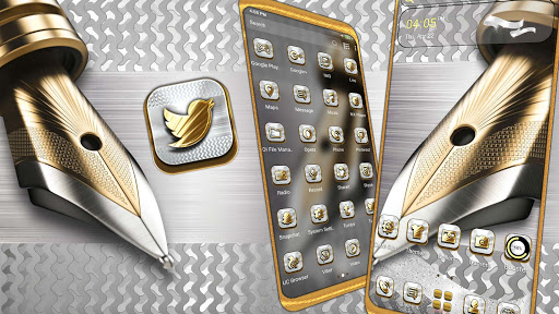This theme will change the default android theme of your phone and give a new awesome look for your smart phone. If you apply this Metal Fountain Pen Theme Launcher you get speed, beauty and elegance without lost Android customization and personalization. Using Metal Fountain Pen design to make the interface more cool and beautiful. It can completely change the appearance and operation of your phone, giving you an unprecedented experience: simple, elegant, modern! When you apply this Metal Fountain Pen theme you will get new home screen wallpaper , new lock screen look, and all new golden icons pack.