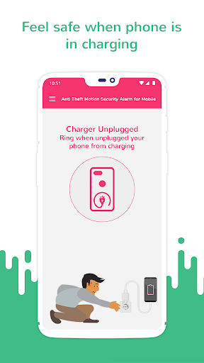 Its very easy to secure your mobile with motion alarm, just set password and make alarm service on, put your mobile without worry anywhere, if any unknown person moves your mobile it will ring alarm. Alarm can only be stop with password enter that is only you know.