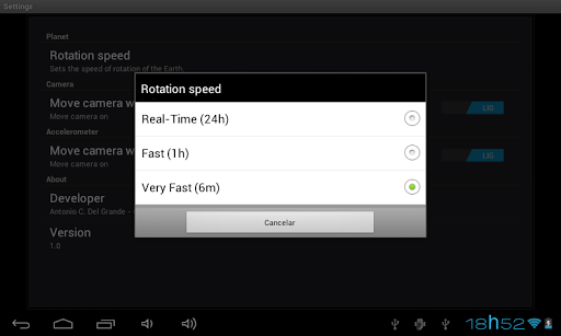- Mais duas opções de velocidade. Volta completa do planeta em 6 minutos e 1 hora;