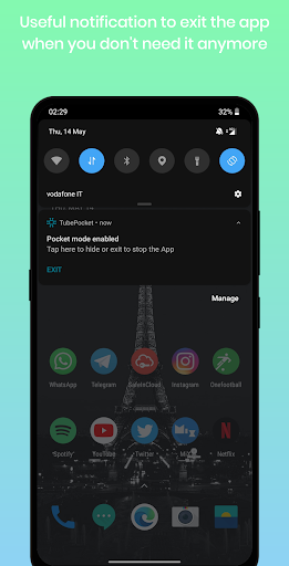 Let's say that you have your device in your pocket and you want to listen to your favourite music or podcast on some website, once the phone gets in your pocket it shows the transparent screen and makes sure you don't press some buttons or perform some unexpected actions!