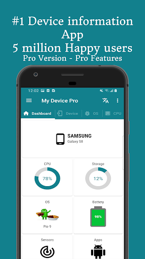 #1 Device information App in this Category. All the Software & Hardware details can share. For all Hardware and software details of your device use "My Device Pro", It's simple and easy to use. Multi-Language support one of the important feature of "My Device Pro".