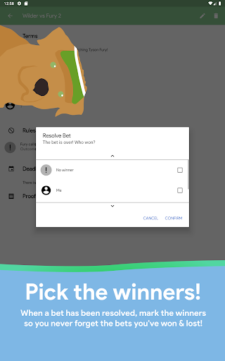 When the bet has been resolved, you can mark whoever won, and the bet will be stored in your archive of past bets. Go back in time and see all the past bets you've won and lost, and maybe you'll be able to figure out how to make better predictions next time!