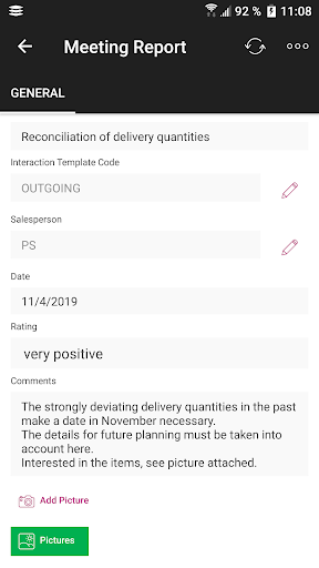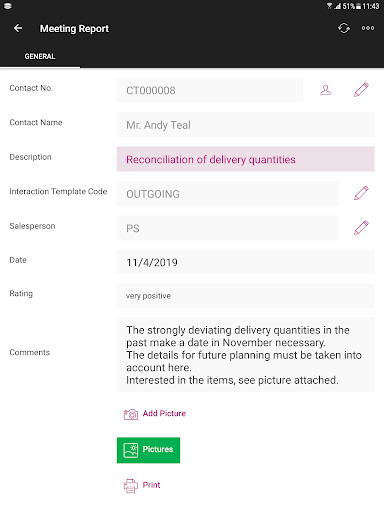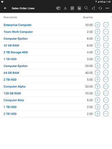 - Mobile sales: create quotes and orders, access customer information and current stock levels, and write additional information and commentary in meeting reports.