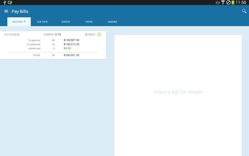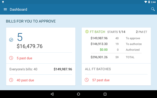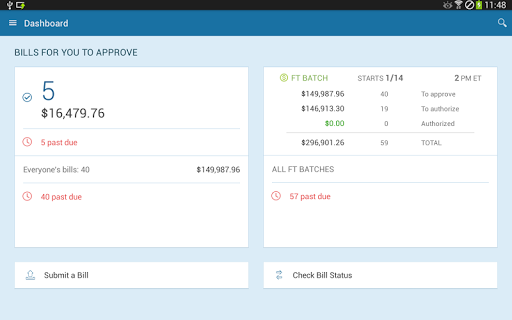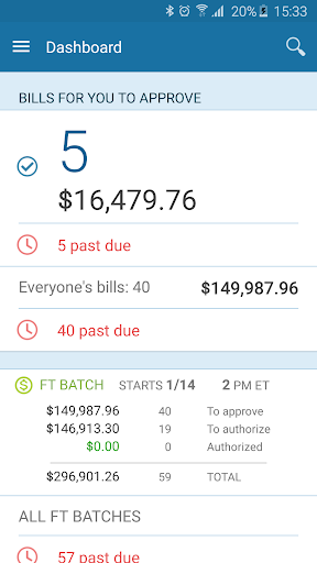 - Easily view a real-time dashboard of bills awaiting your approval