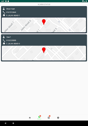 This app could increase awareness to residents and let residents to be able knowing what is happening in their living place in real time. Registered residents will receive notification once someone active the alarm.