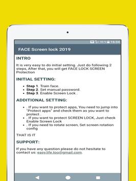 is an amazing & professional lock screen app with awesome lock.FACE Screen lock 2019 allows you to unlock your phone with a variety of Face:. FACE Screen lock 2019 also has the feature to unlock screen with pin code if you forgot your Face. You can set Face using pin code.