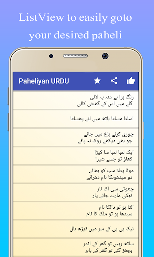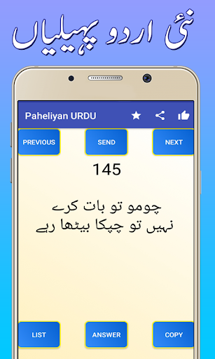latest paheli Yeh urdu paheliyon ki application hy jis mien aap paheliyan parh sktay hien aur asani sy doston ko send ya share kr sktay hien.