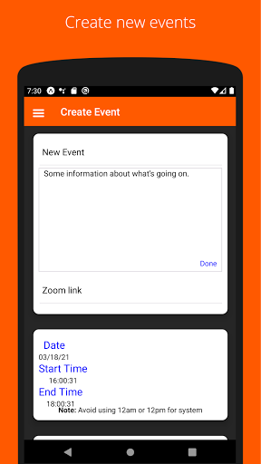 - Sign up and details for events