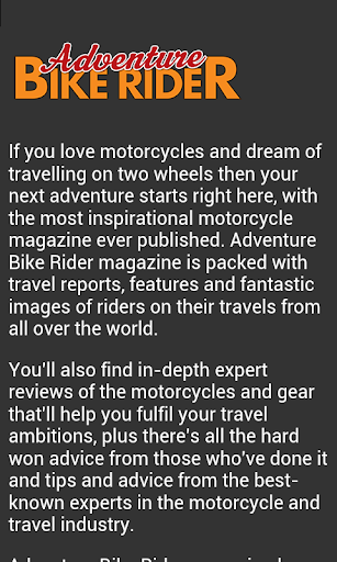 The Adventure Bike Rider App is an exact replica of the printed version of the magazine.