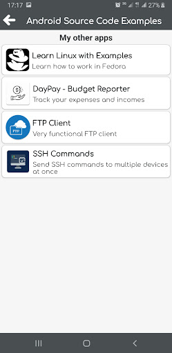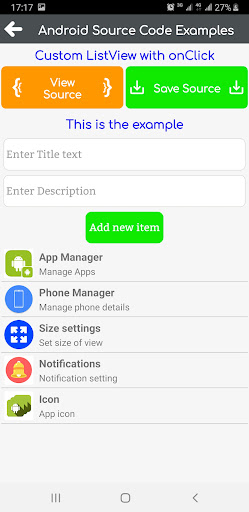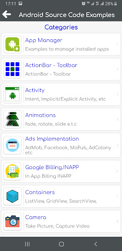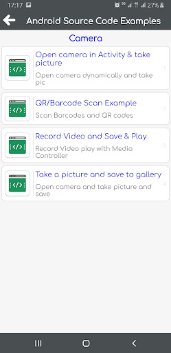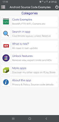 This app is focused on example codes to Develop Android Application with Android Studio. If you want to make your android app in Android Studio this app is just for you. The examples here can be exported and run directly on Android Studio. And you can view source code without exporting it. I have tried to give examples with basic code examples. You do not need internet connection to view or export the source codes.
