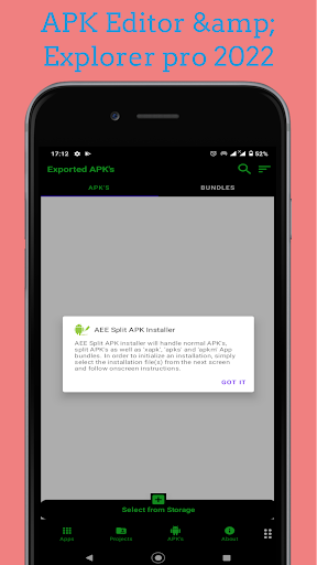 APK Editor & Explorer pro 2022 includes a set of open-source tools mainly designed to explore the contents of an installed application on an Android device. Additionally it offers a feature-rich APK/Split APK's/App bundle installer which allows users to pick and install files from device storage. Please Note: This application only explores installed applications, not APK files saved in the device storage.