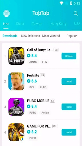 It shows you where you can find games trending list like tap tap pubg and more games.